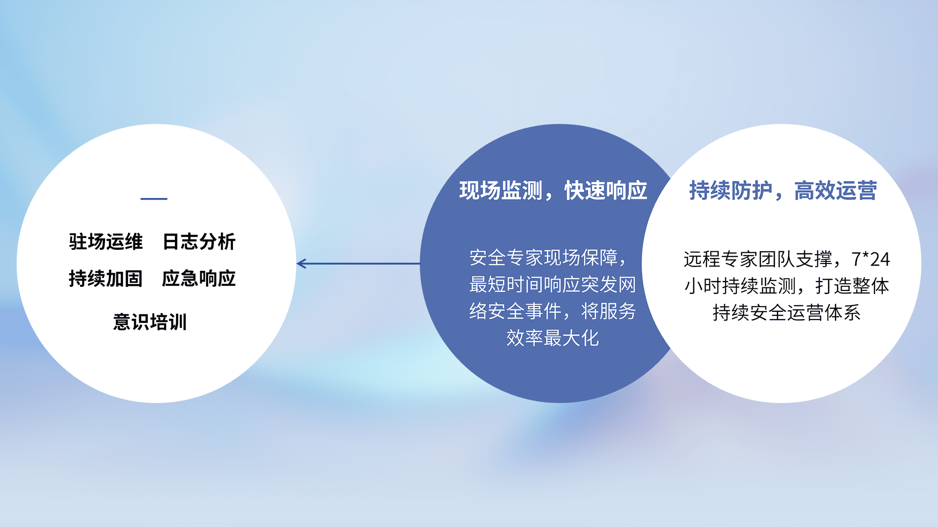 针对客户行业特性,,提供专属的一站式安全管理服务,,,,帮助客户全面感知网络空间威胁,,通过安全专家的线上、、线下防护支持,,,实现风险闭环,,将安全保障常态化,,,,为客户打造常态化安全运维运营服务。。。